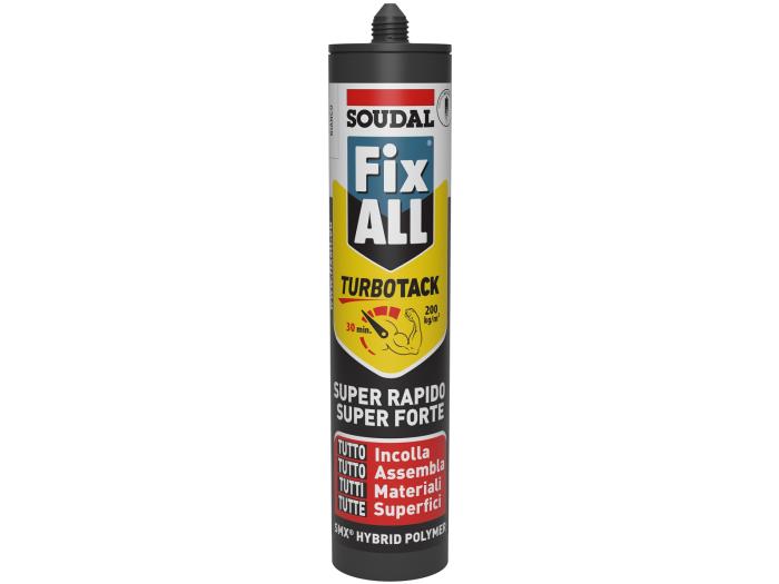 SOUD 172778 FIX ALL TURBO TACK 172778 SOUDAL su 5 stelle 0 0 0 0 0 Adsesivo di montaggio FIX ALL TURBO TACK - Bianco - Cartuccia da 290ml Art. 172778 SOUDAL 9,14 € di cui imponibile 7,49 € Alta disponibilità Spese di spedizione: GRATIS per ordini superiori a 150€ Spedito in: 1/2 giorni lavorativi Acquista Descrizione E' stato sviluppato per applicazioni di incollaggio ad alte prestazioni che richiedono una presa rapida. Fix ALL TurboTack combina un'eccezionale presa iniziale elevata (200 kg/m ) con una velocità di fissaggio superiore (manualmente stabile dopo 30 minuti). Download Scarica documentazione allegata 1