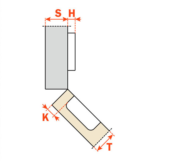 Cerniere per ante in legno con montaggio ad angolo positivo.