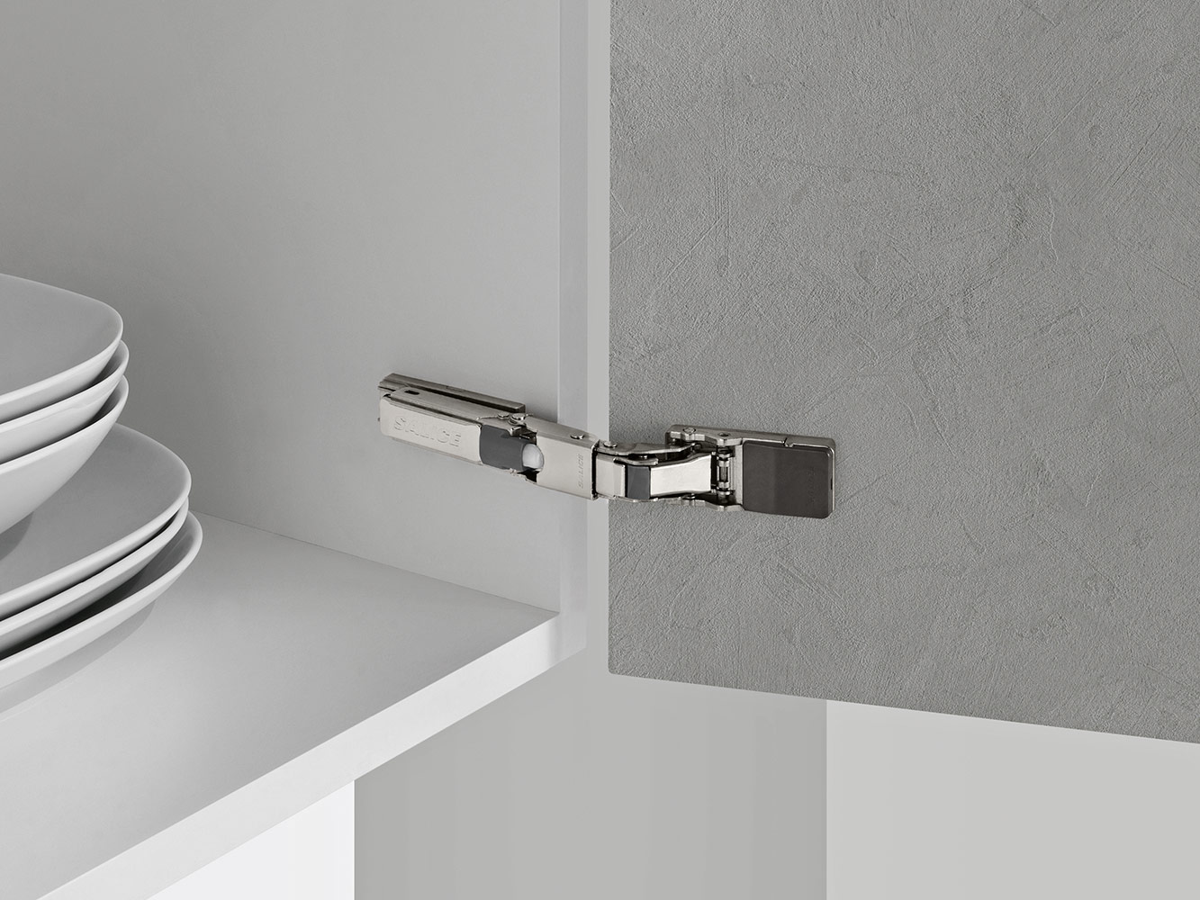 Con deceleratore integrato ad olio siliconico. Consente in ogni condizione e con qualsiasi dimensione di anta, una chiusura ammortizzata, dolce e progressiva.