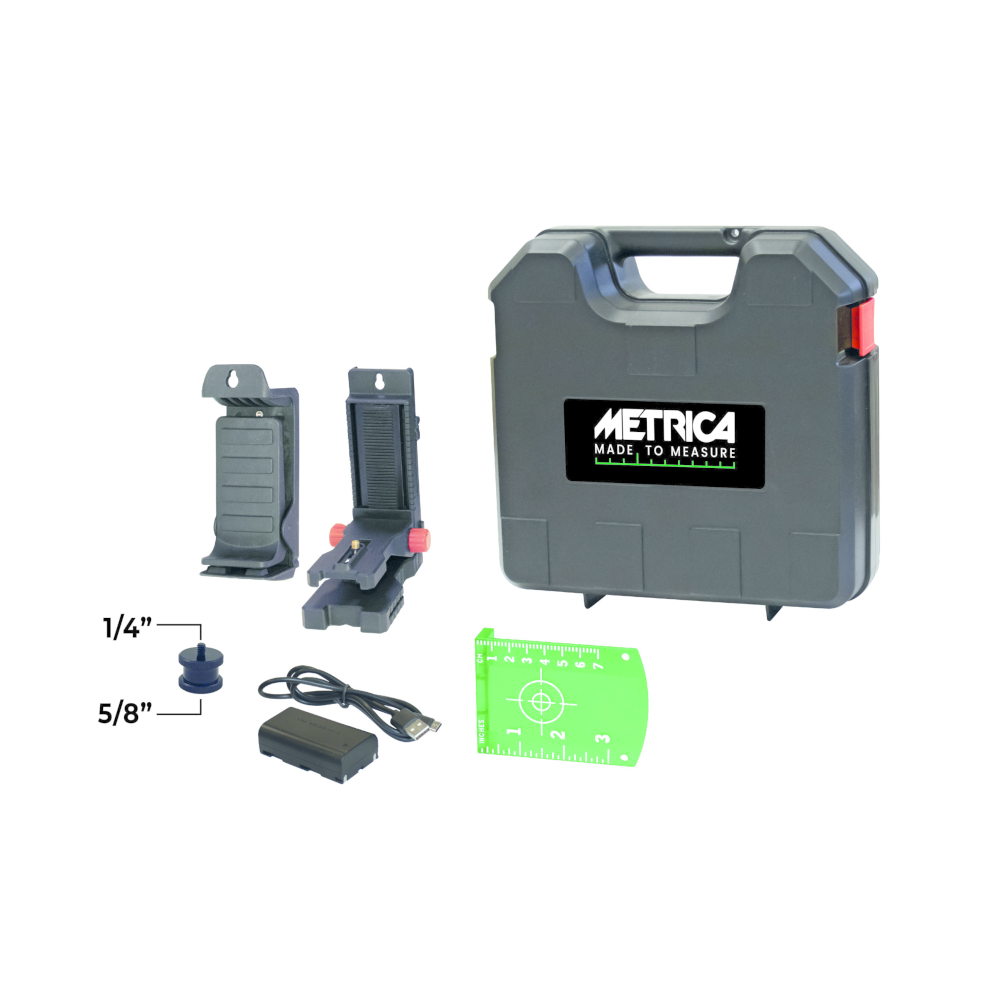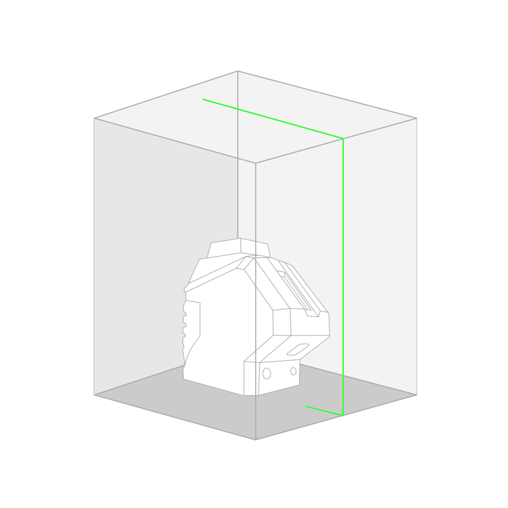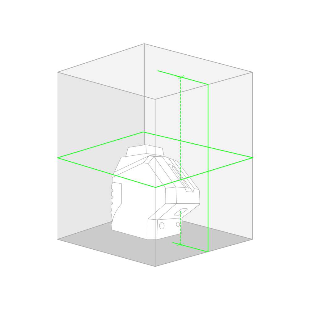 Autolivello laser verde. Proietta: un piano orizzontale su 360 più un piano verticale formando 1 croce a parete, più 2 Punti (terra e soffitto) per il piombo